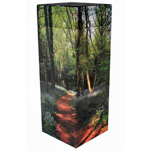 An eco-friendly, biodegradable, cardboard container designed for controlled scattering of ashes (or it can also be interred). Depending on the quantity of ashes, it may be a large size (34.5cm tall, 13cm wide), a medium size (28cm tall x 11cm wide) or split into two medium size pods. Each pod has a removable lid and resealable opening which is opened when scattering.